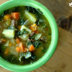 This beef and kale soup is one that I keep in my back pocket for those nights I really want to pack in the minerals with bone broth and as many vegetables as I can get in there (and still taste good!). Those kids work so hard all day at school and really need a boost at the end of the day.