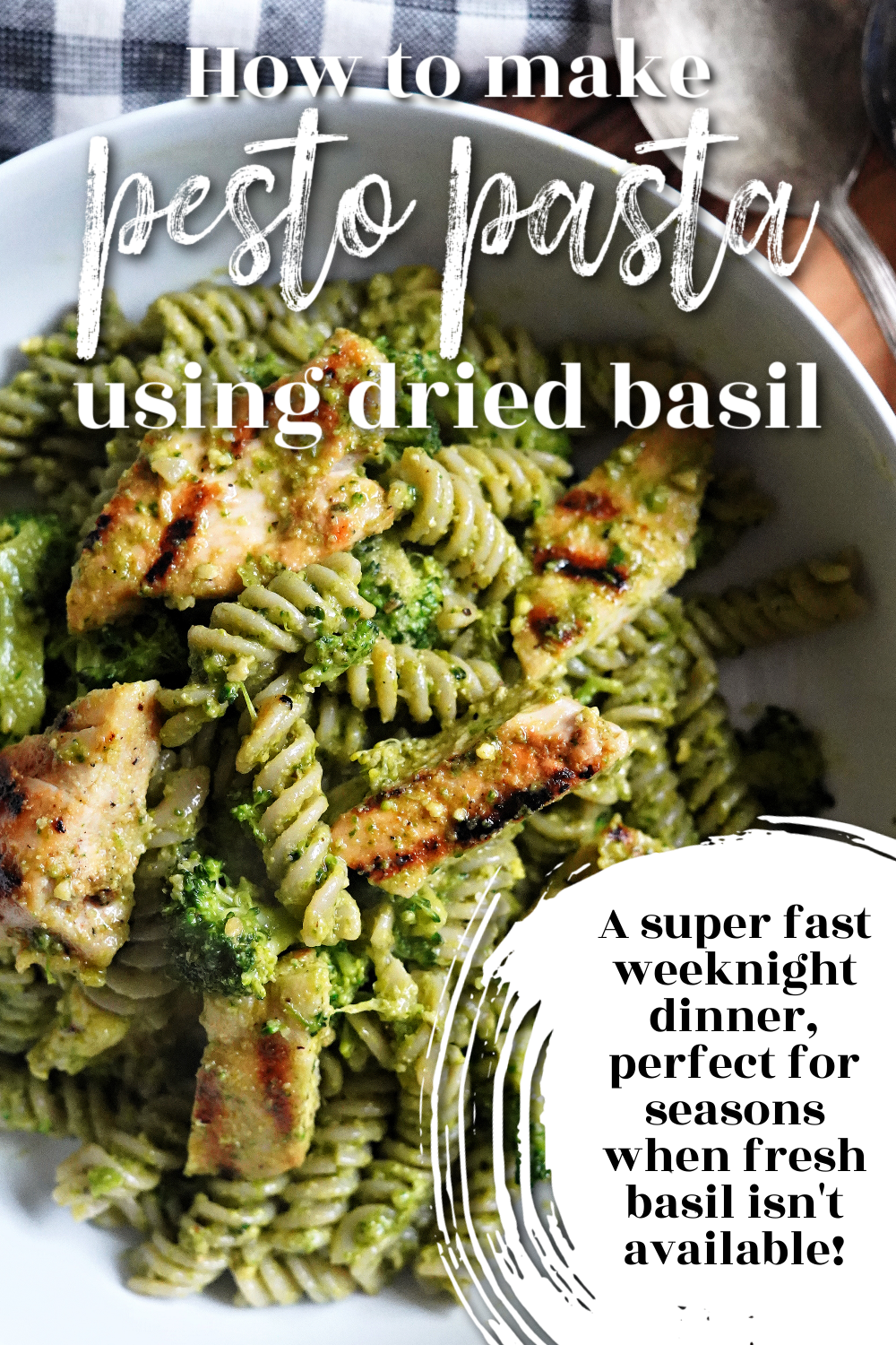 My super active athlete’s favorite recovery meal, use dried basil to make the fastest and easiest pesto pasta dinner, perfect for seasons when fresh basil isn’t available!